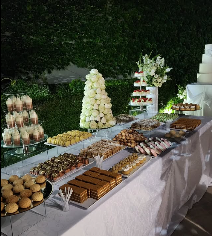 The tiered arrangement adds height and elegance, making it perfect for weddings where presentation is just as sweet as the flavors.