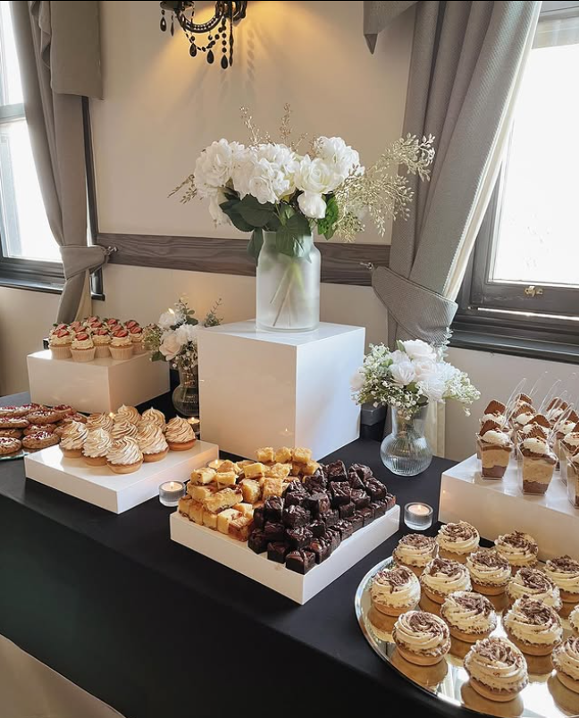 Perfectly portioned and beautifully styled, they add a modern and playful touch to any wedding dessert table.