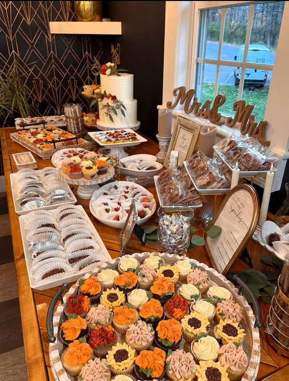 The warm colors and thoughtful details make it the perfect sweet spread for a fall wedding celebration. A charming mix of elegance and seasonal comfort!