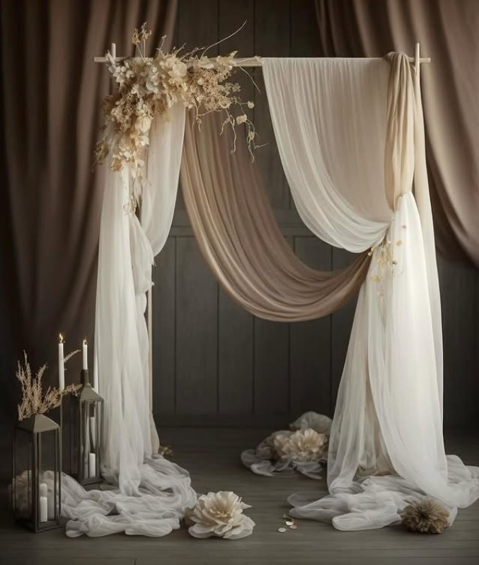 Choosing a draped fabric arch allows for versatility. You can customize the colors and flowers to match your wedding theme. Whether it’s a rustic outdoor wedding or a chic indoor celebration, this arch can adapt to fit your vision.