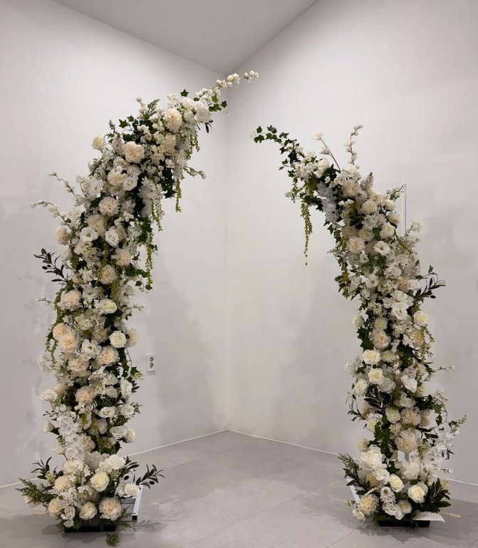 Perfect for an indoor or minimalist venue, it blends elegance with contemporary style, making it a breathtaking choice for couples who love a unique, fashion-forward aesthetic.