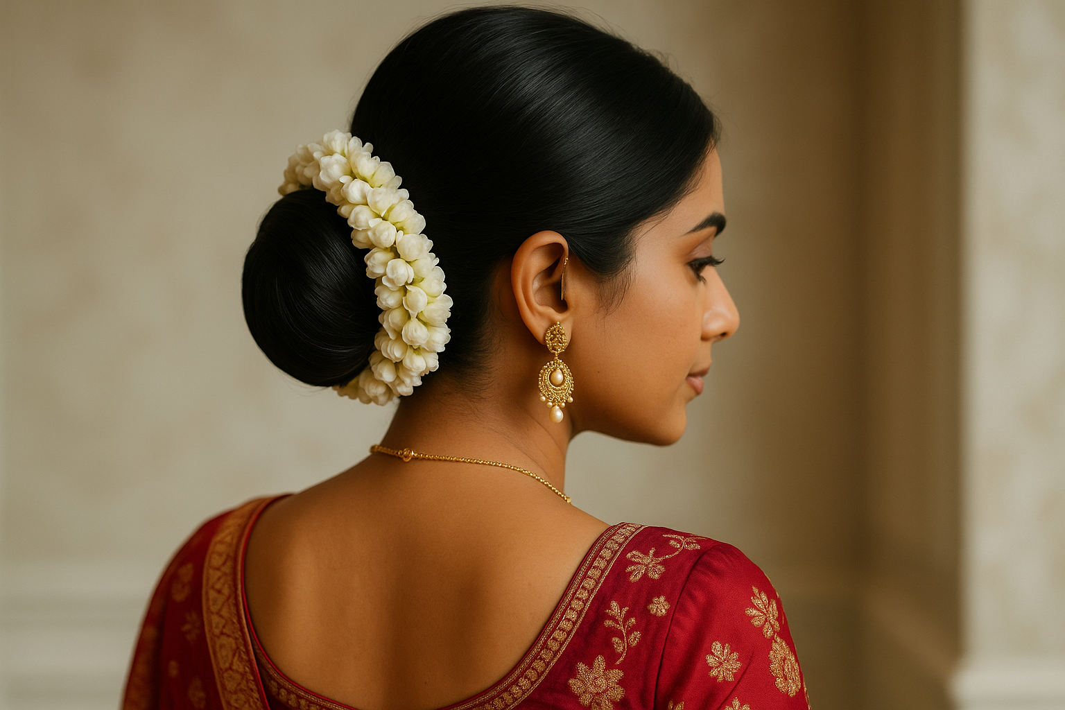 Sleek Low Bun with Gajra