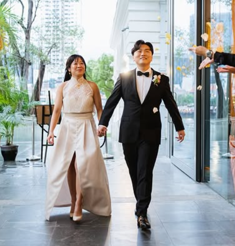 This stunning couple showcases the beauty of cultural fusion in wedding guest fashion.