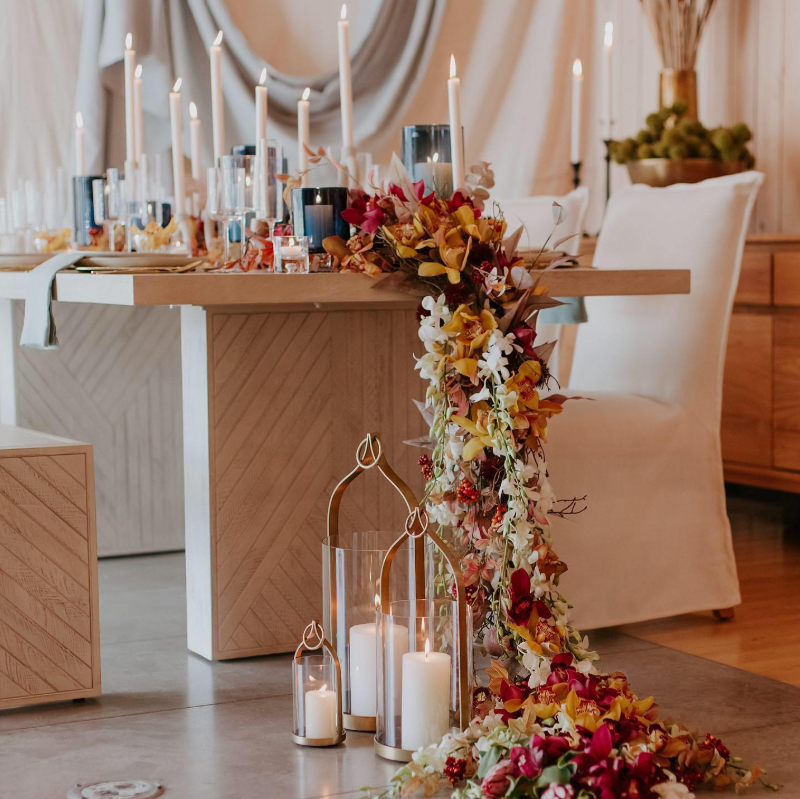 This beautifully styled setup highlights why home décor pieces like elegant candles, chic dinnerware, and timeless floral accents are must-have additions to your wedding registry.
