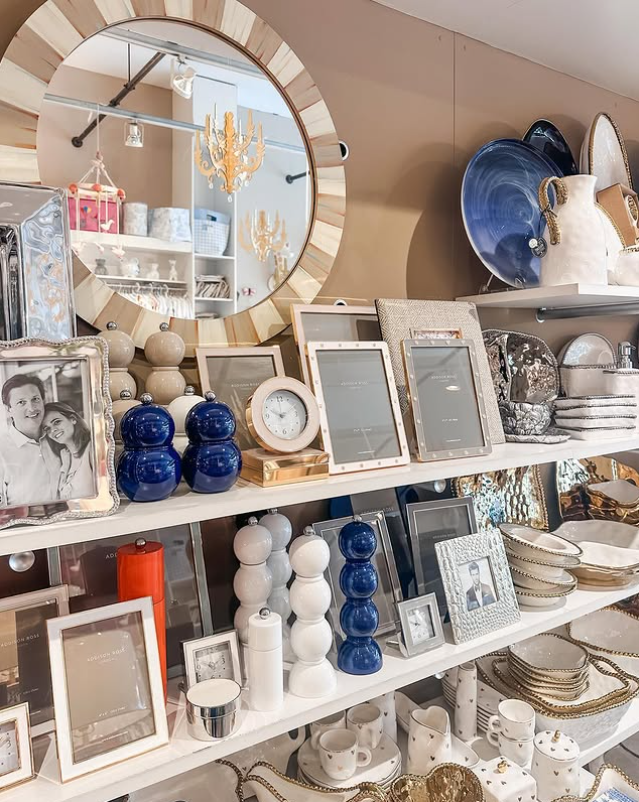 A beautifully curated selection of wedding registry must-haves featuring elegant picture frames, modern decor, timeless dinnerware, and statement accent pieces.