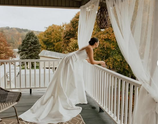 Perfect for an autumn ceremony, this dress exudes both warmth and sophistication, making it a dreamy choice for a countryside wedding.