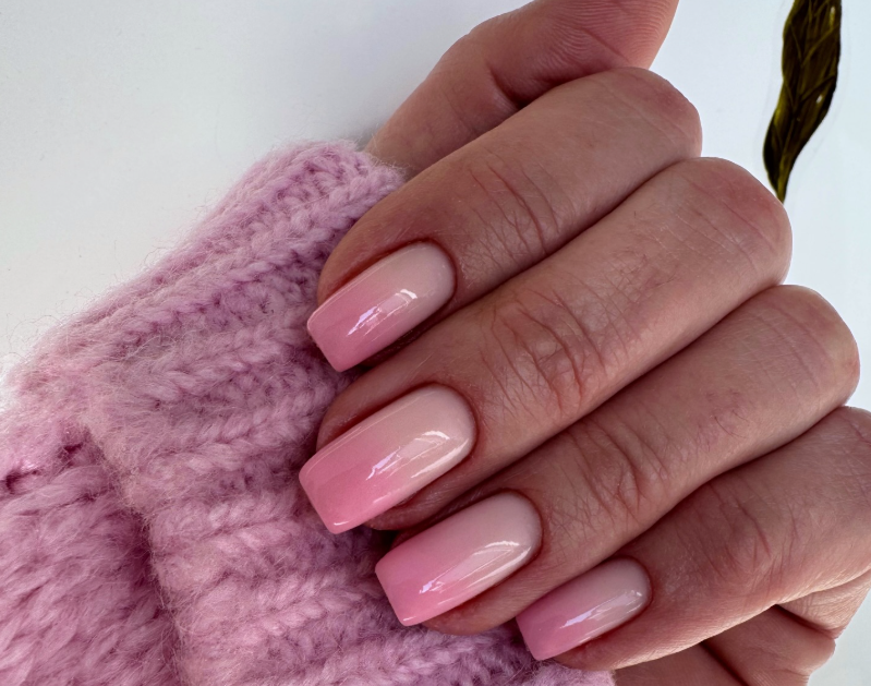 Soft pink fading into a natural nude base creates the ultimate romantic ombre look.