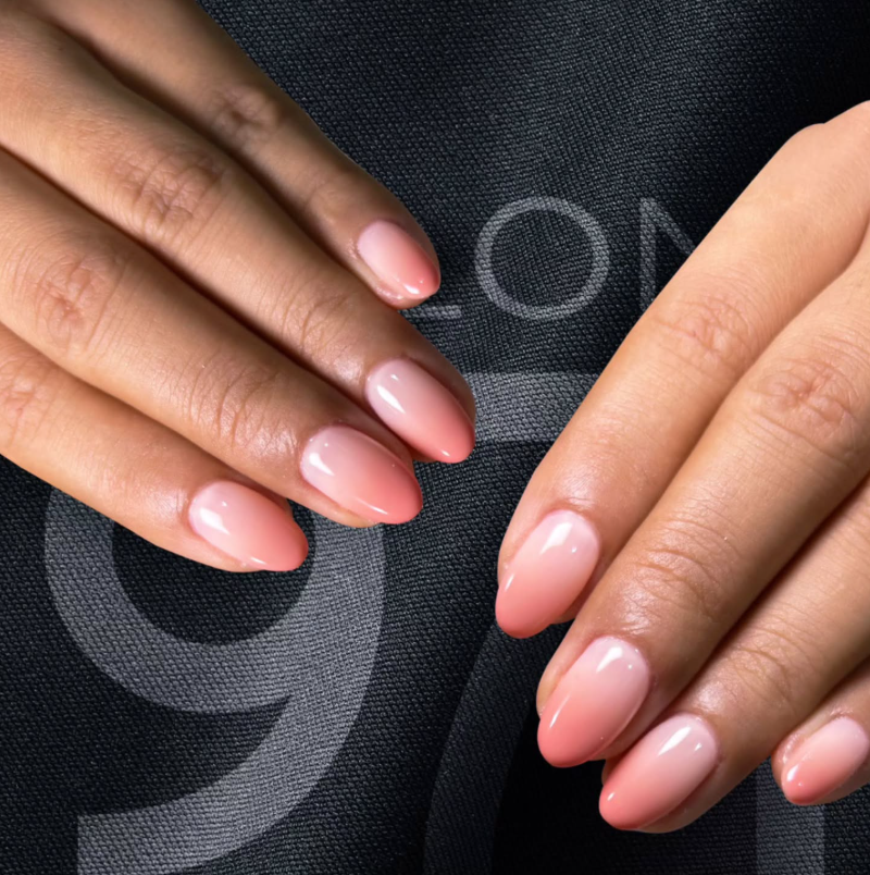 A delicate peach-to-nude ombre that radiates warmth and romance.