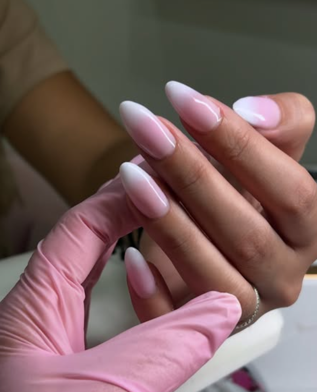 A dreamy ombre design that blends soft pink into crisp white tips, creating the perfect modern twist on the classic French manicure.