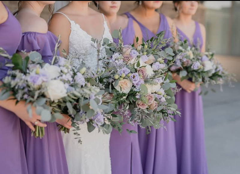 Elegant Purple Bridesmaid Dresses with Romantic Bouquets