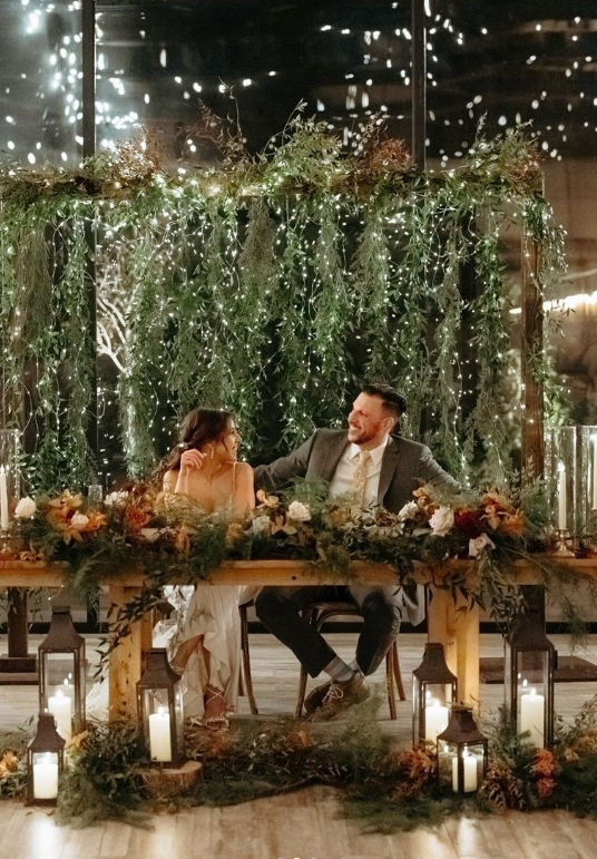 This stunning rustic winter wedding sweetheart table captures the perfect balance of warmth and elegance.