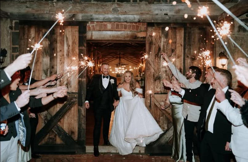 End your rustic winter wedding with a magical sparkler send-off. The warm glow of sparklers against the wooden barn backdrop creates an unforgettable, picture-perfect finale.