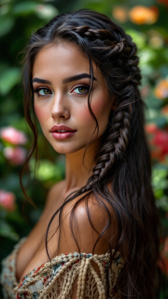 Braided side part hairstyles add a unique twist to long hair, making them perfect for various occasions. The image showcases a stunning look, where the hair has a deep side part, adorned with intricate braids. This style beautifully frames the face and highlights the natural beauty of the individual. The contrast between the sleek strands and the textured braids creates an eye-catching effect. Such accents are not just stylish but also practical, helping to keep hair in place while adding flair. Whether you’re heading to a casual outing or a formal event, braids can elevate your look effortlessly. Experimenting with different types of braids can lead to customized styles that suit your personality. Long hair paired with braided side parts can offer versatility and elegance in one go.