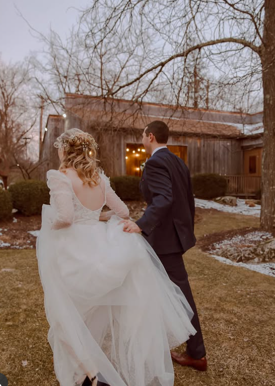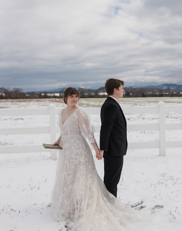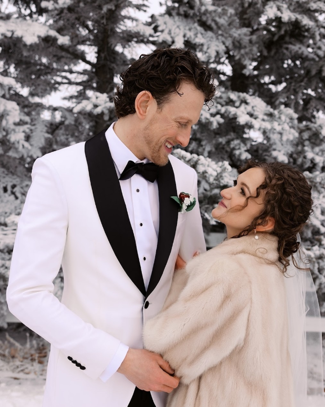 This couple captures the essence of a winter wonderland wedding with timeless elegance.