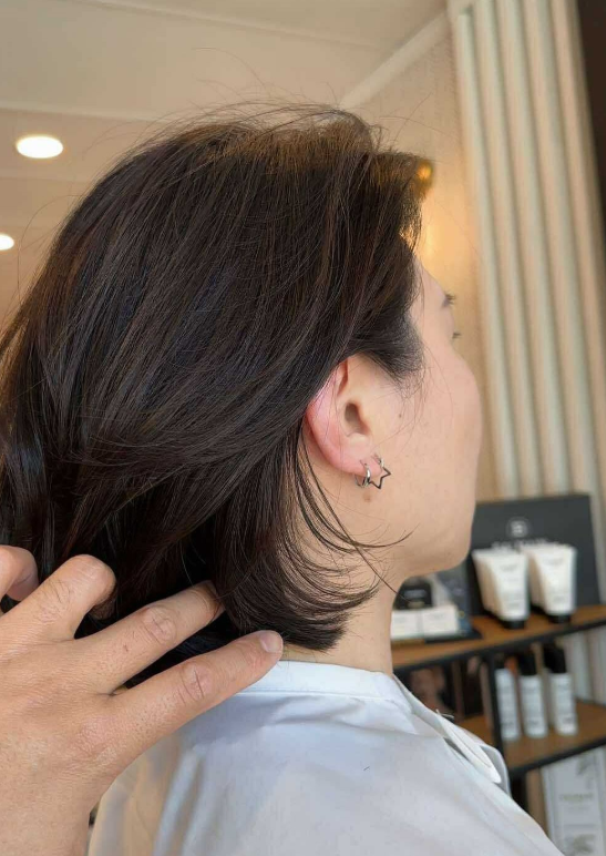 The gentle layering adds volume and movement, making it perfect for those who want an easy-to-maintain yet stylish haircut. Ideal for both workdays and nights out.