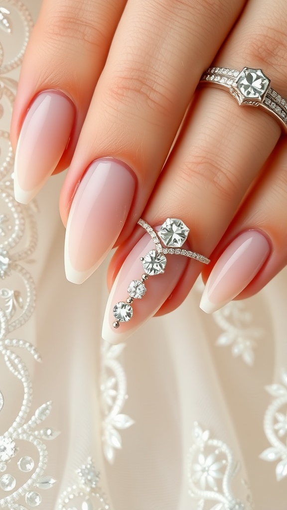 A delicate ombre base paired with subtle pearls and tiny white dots gives this bridal manicure a soft, dreamy finish.