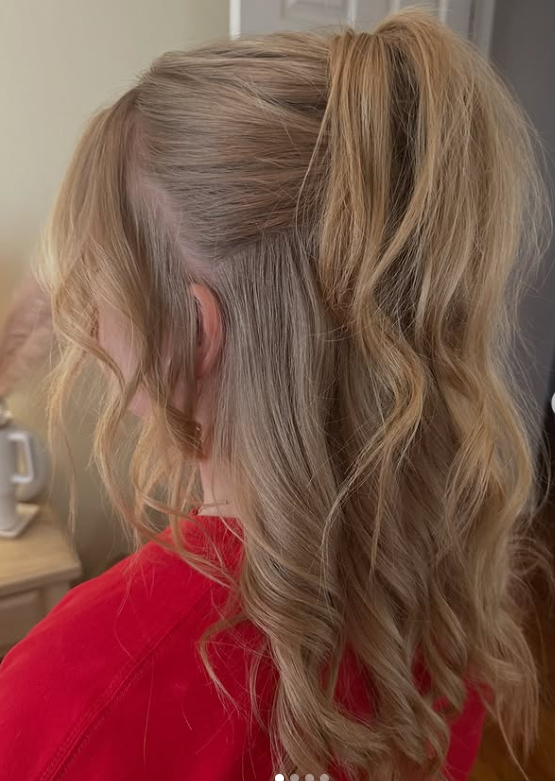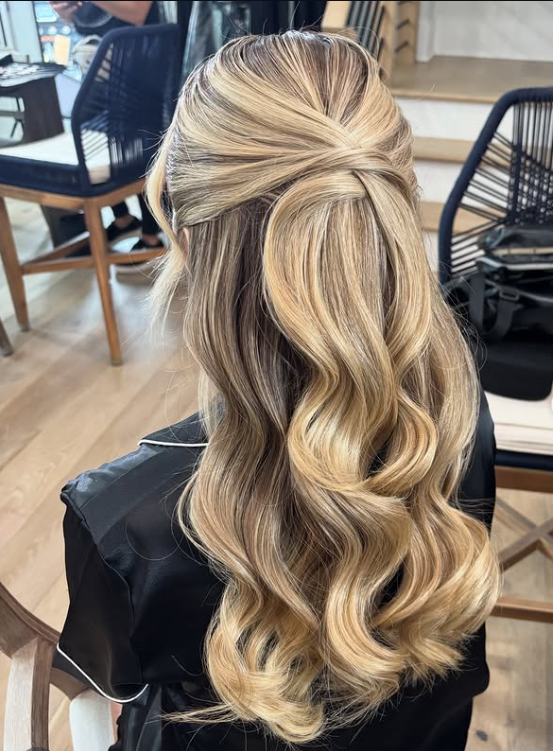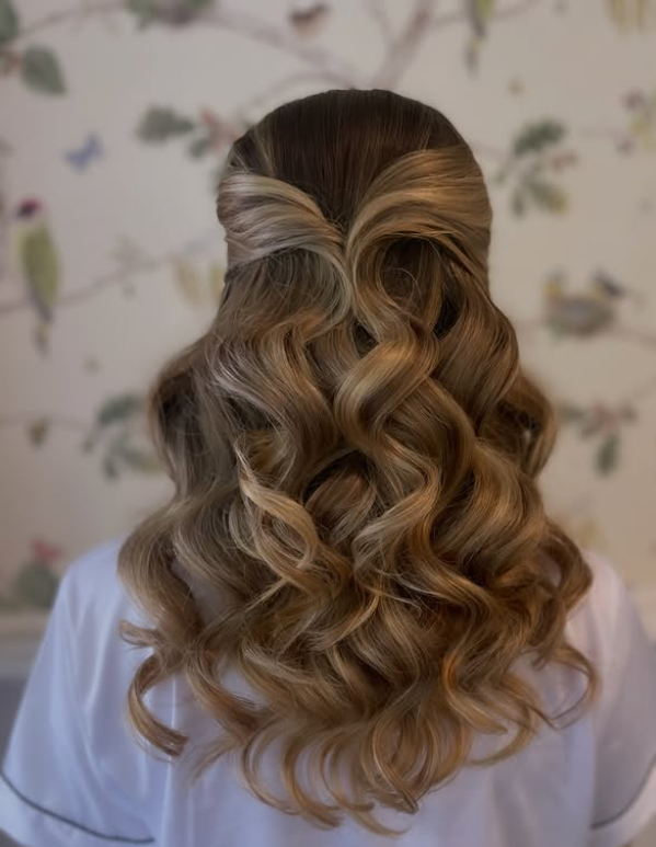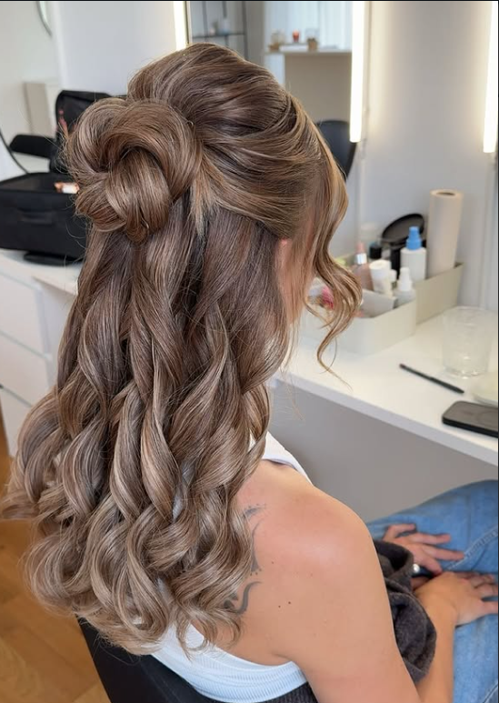This half up half down curly hairstyle is all about soft elegance and effortless flow.