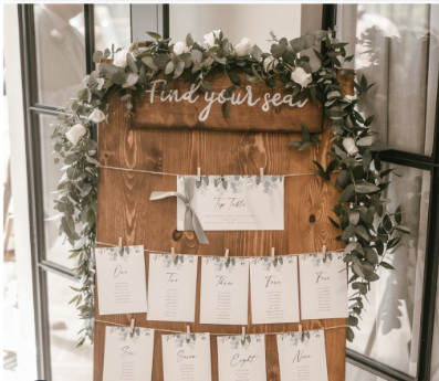 Rustic Wooden Seating Chart with Greenery Garland