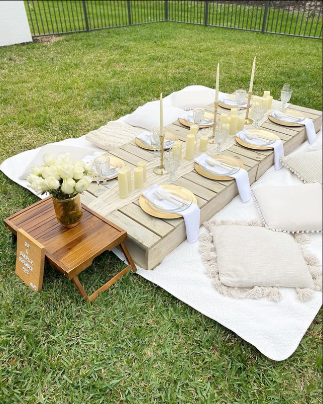 Who doesn’t love writing on a chalkboard? A chalkboard for your backyard engagement party adds personality and activity for guests. Other reasons why we love adding chalkboards to backyard engagement parties and tips can be found below: