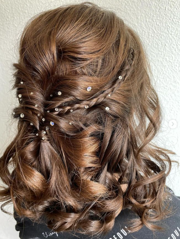 10. Braided Half-Updo with Crystal Accents