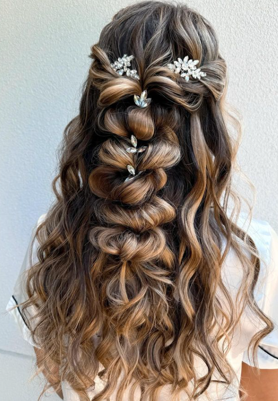 12. Bubble Braid Half-Updo with Crystal Accents
