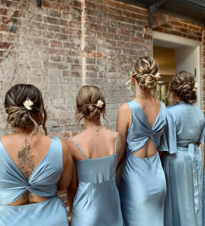 Perfect for bridesmaids who desire a coordinated yet personalized look, these chic low buns ensure your bridal party looks effortlessly graceful and beautifully unified for your special day.