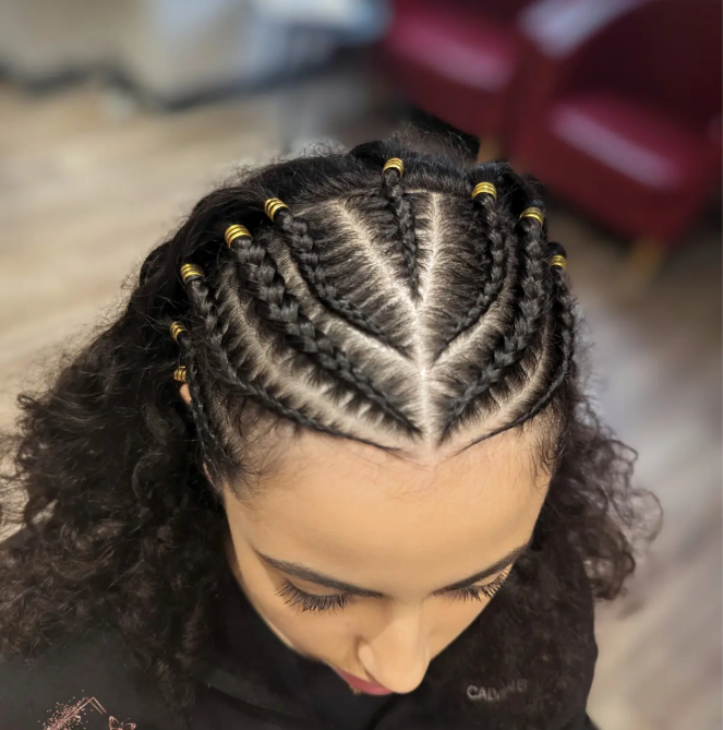 14. Intricate Cornrow Pattern with Gold Cuff Details