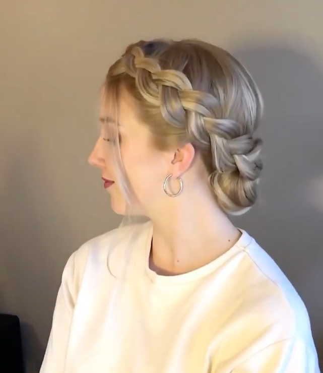 20. Chunky Crown Braid with Elegant Low Bun