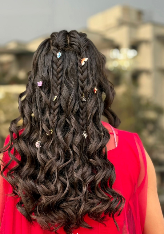 The tiny hair charms scattered throughout add a playful, eye-catching detail that really stands out in photos.