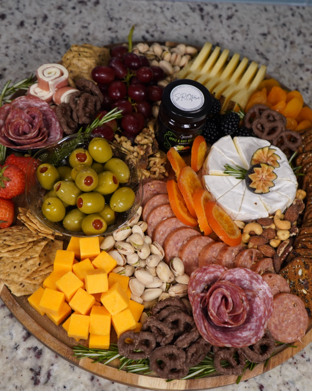 The sweet additions give it a playful, celebratory feel, while the classic meats and cheeses keep it elegant and refined.