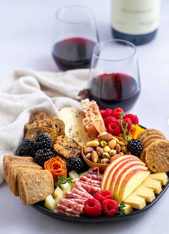 With beautifully sliced apples, creamy cheeses, folded cured meats, fresh berries, crunchy nuts, and artisan crackers, it creates a balanced spread that pairs effortlessly with a glass of red.