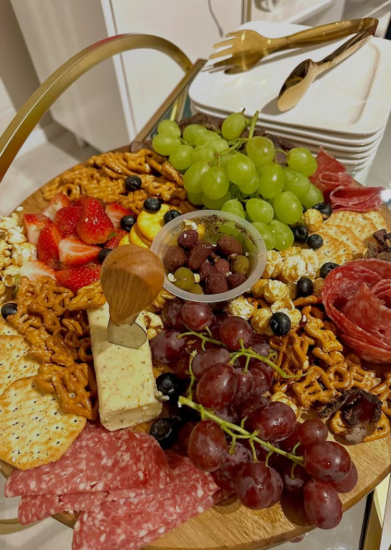 With neatly sliced cheeses, crisp crackers, creamy dips, fresh grapes, olives, and rolled deli meats, it keeps things simple yet elegant.