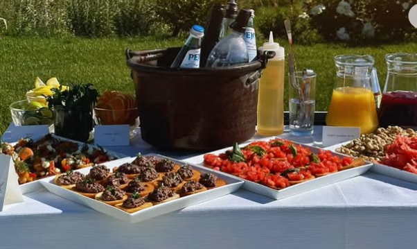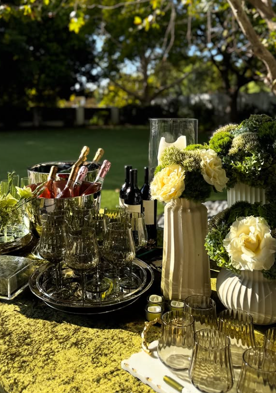 The outdoor garden backdrop adds a natural, effortless charm that makes guests want to linger, sip, and snack.