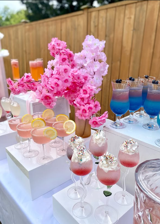 It’s the perfect inspiration for a floral-forward bridal shower where the drinks double as décor — delicate, colourful, and effortlessly stunning from every angle.