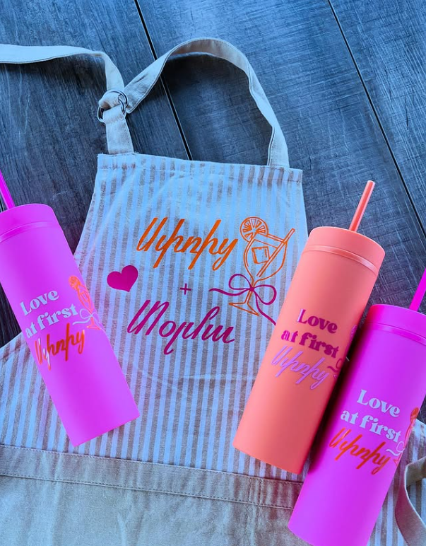 Now this is the kind of bridal shower game prize that feels extra in the best way. Personalized tumblers in bright, fun colors? Yes please.