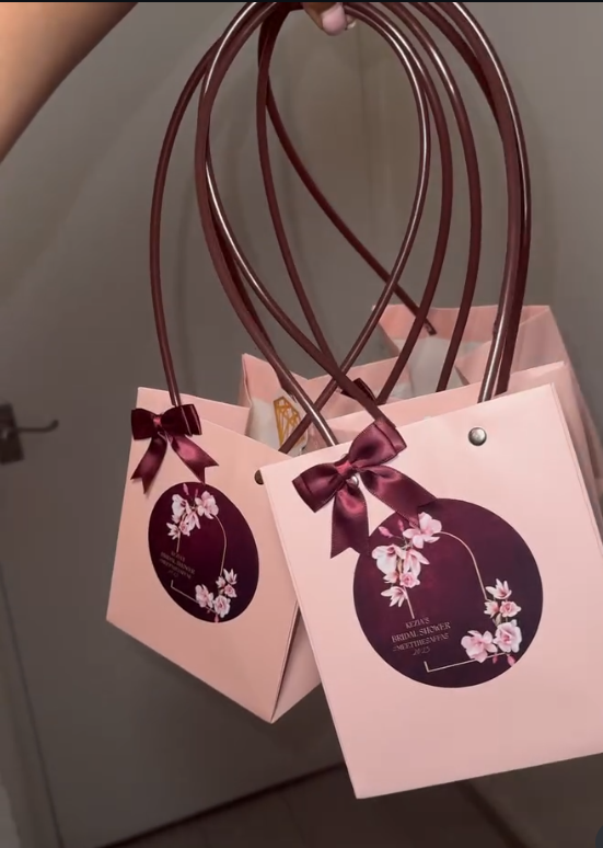 Instead of handing over a single item, tuck your prize into a beautifully styled mini gift bag like this — soft blush tones, a satin ribbon, floral detailing… it instantly feels intentional and classy.