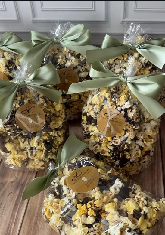 Sometimes the best bridal shower game prizes are the ones that make everyone smile immediately — and a beautifully wrapped bag of gourmet popcorn definitely does that.