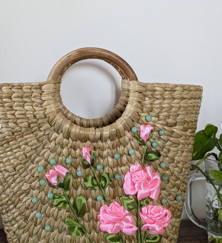 A woven handbag with delicate floral detailing instantly feels fresh, feminine, and perfect for spring or summer celebrations.