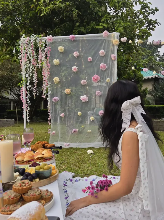 It’s relaxed, romantic, and ideal for a spring or summer bridal shower — the kind of backdrop that makes every photo feel magical.