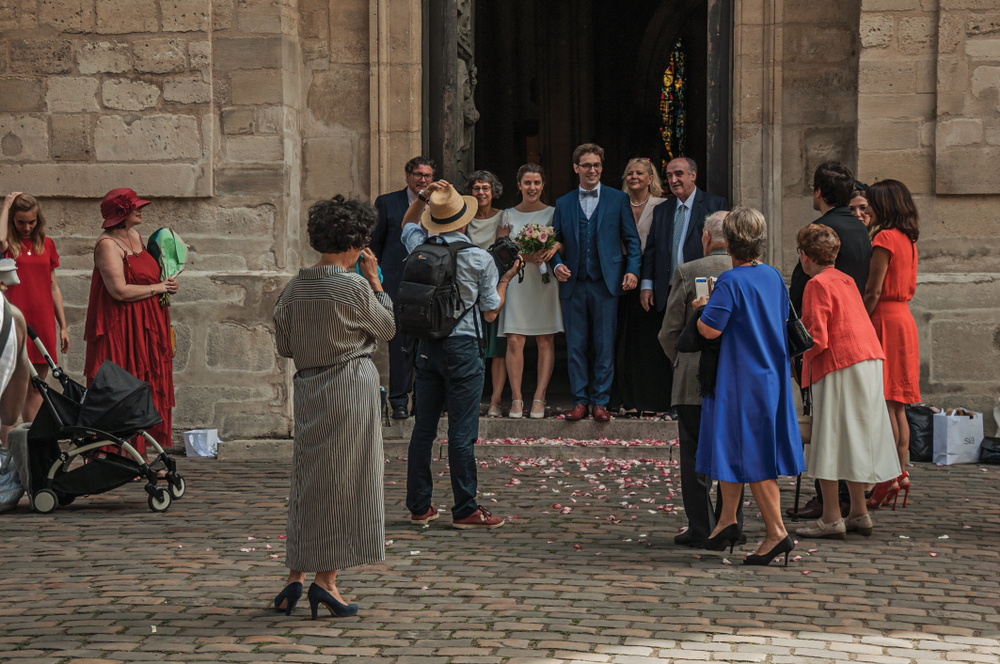 In fact, it is traditional for wedding photos to be taken earlier in the day, so that the families and the happy couple have a chance to meet, mingle, and make memories before entering the church.