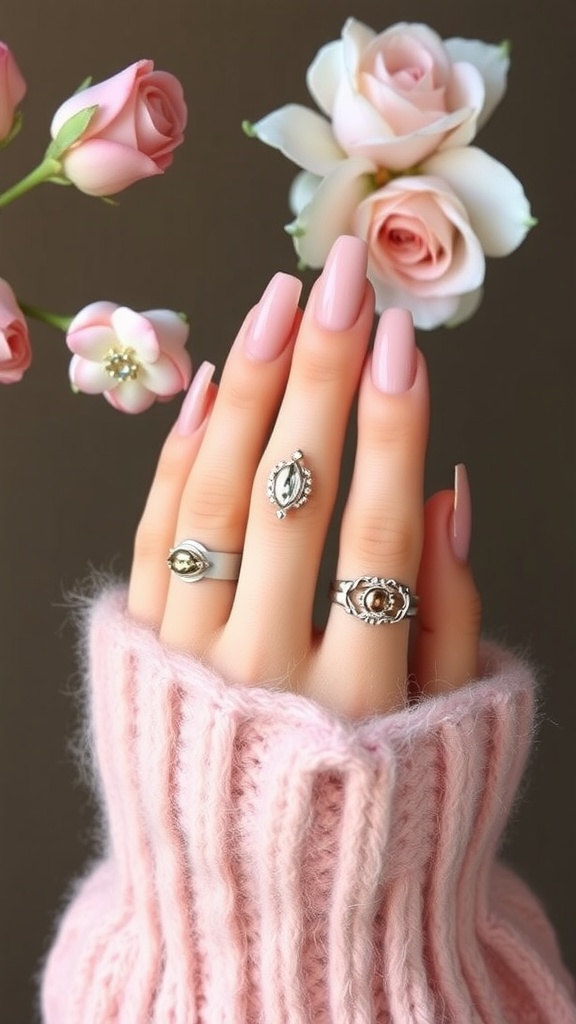The glossy finish of the nails adds to the refined vibe, making them suitable for both intimate ceremonies and grand celebrations. Pastel shades like this pink not only look beautiful but also blend well with various wedding themes, from rustic to modern.
