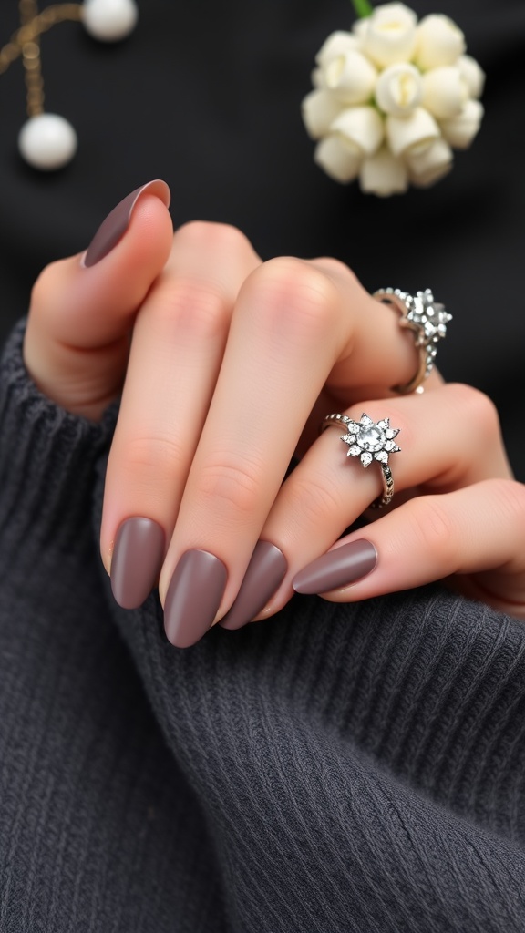 When it comes to wedding nails, a touch of metallic can make all the difference. The image showcases beautifully manicured nails in a soft metallic shade, blending elegance with a modern twist. The pointed shape adds a chic edge that draws attention without being overpowering.