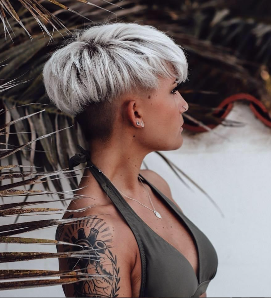 The platinum blonde color adds an extra layer of modernity and edge, making this hairstyle truly unforgettable.