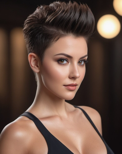 This elegant pompadour pixie is a sophisticated and stylish hairstyle that perfectly balances volume and sleekness.