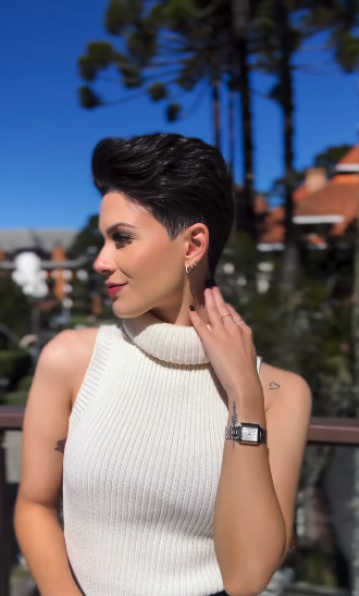 This classic tapered pixie cut is both timeless and effortlessly chic.