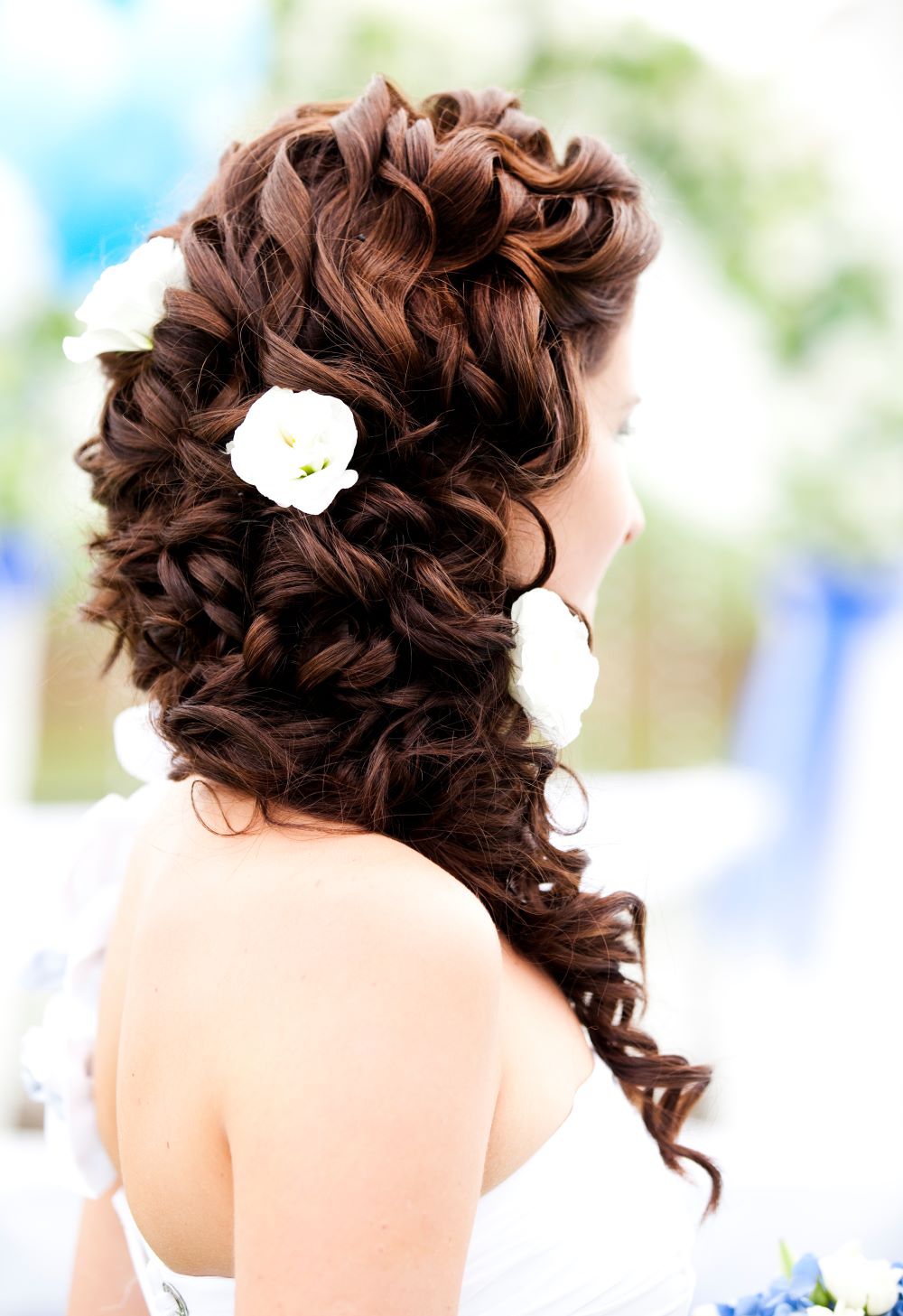 A perfect bridesmaid hairstyle for long hair is to use peekaboo florals. You could save this style for the maid of honor if she has long hair. Her hair with a full head of beautiful natural curls is a great option. She will have fun on the wedding day with these flowers.