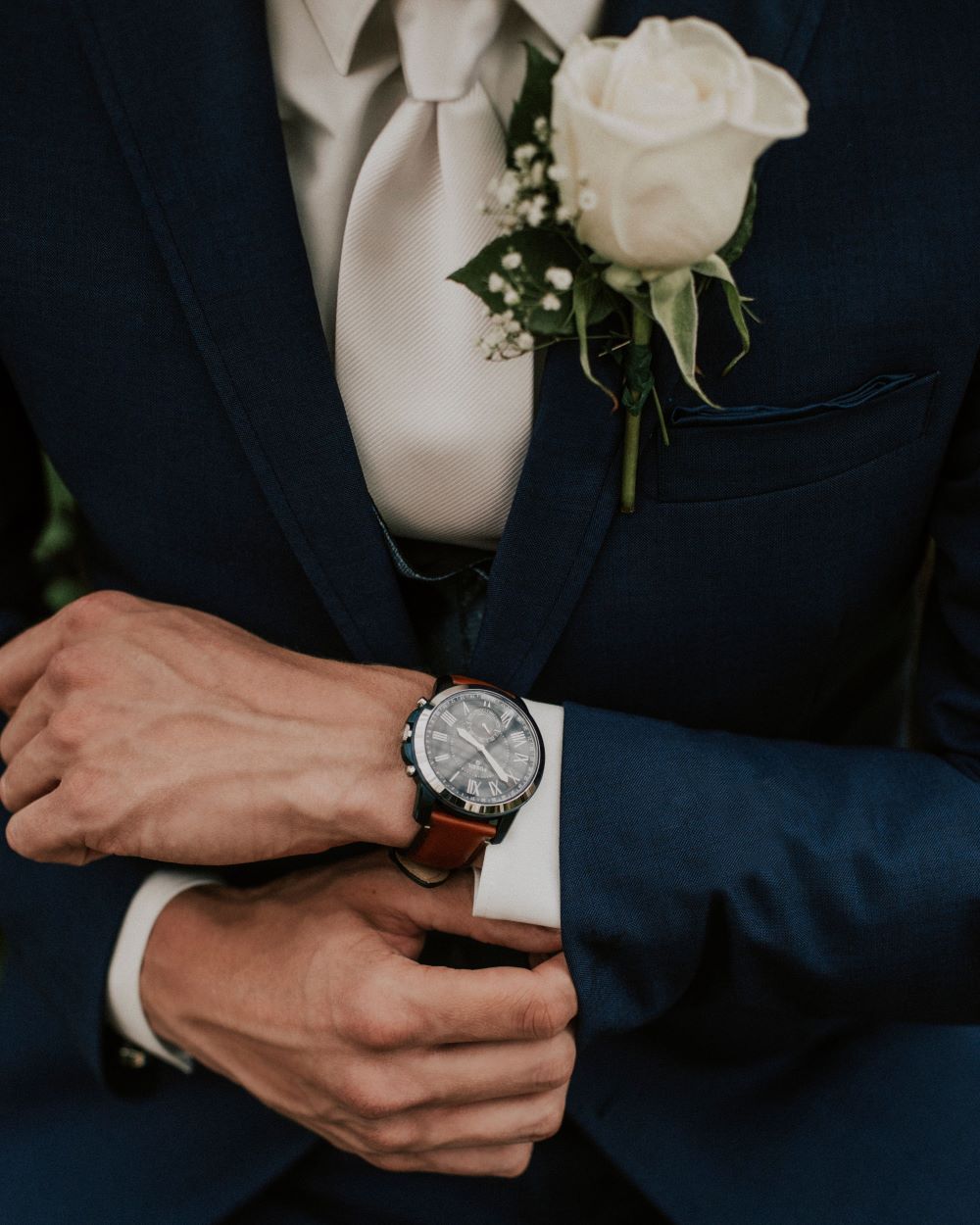 Every groom deserves his moment to shine, and this shot highlights the thoughtful touches that complete his wedding day style. Capture the groom’s final moments of preparation, where anticipation meets sophistication—an essential memory of the day’s excitement and calm before the vows are exchanged.