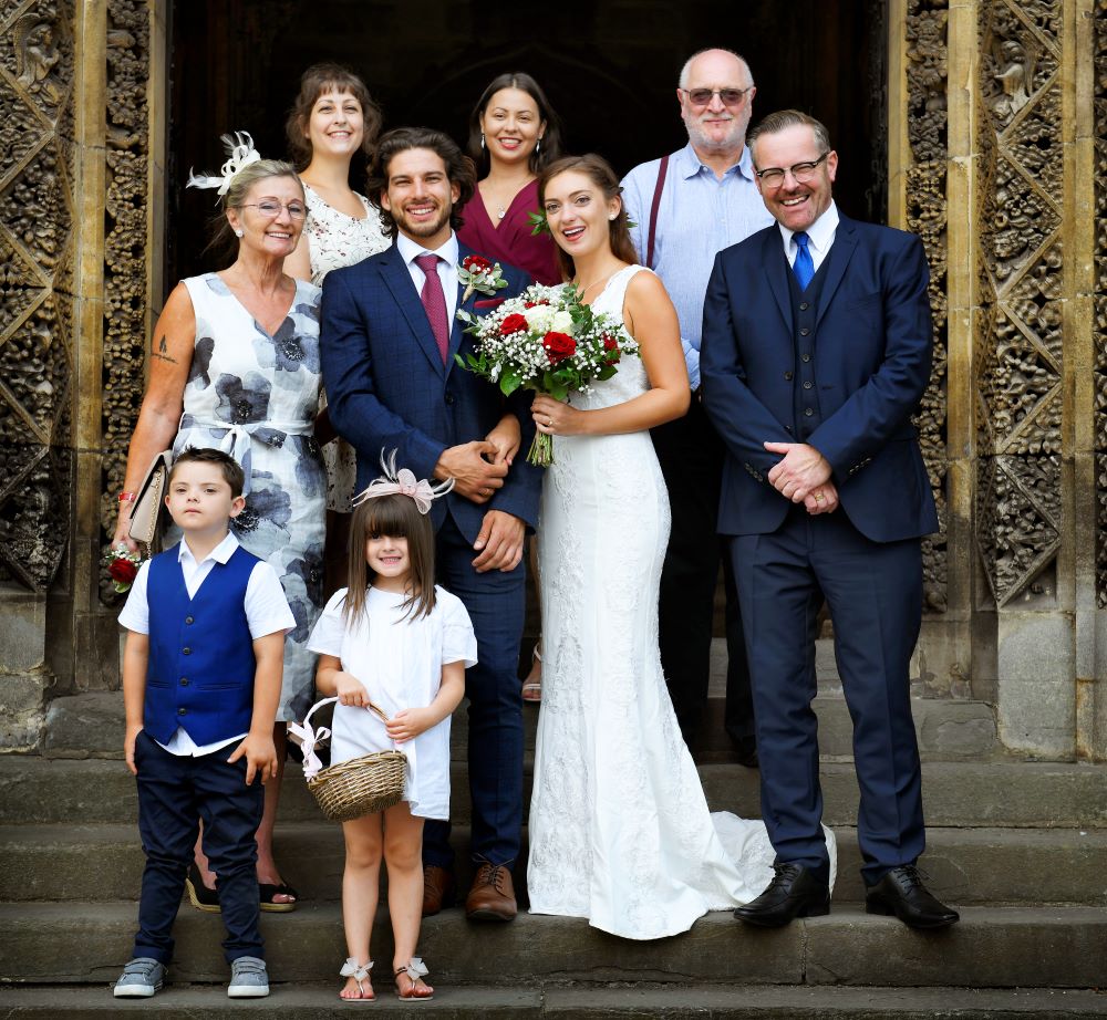 Formal family photos are a must-have to honor the people who’ve supported you every step of the way. This shot brings together multiple generations, from proud parents to playful flower girls, in a moment of joy and celebration.