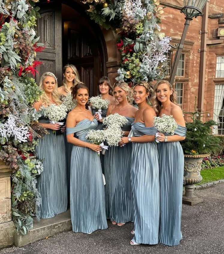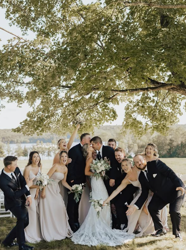 Surrounded by your closest friends, this moment celebrates the love, laughter, and support that make your day truly special. The stunning dresses and bouquets tie it all together beautifully.