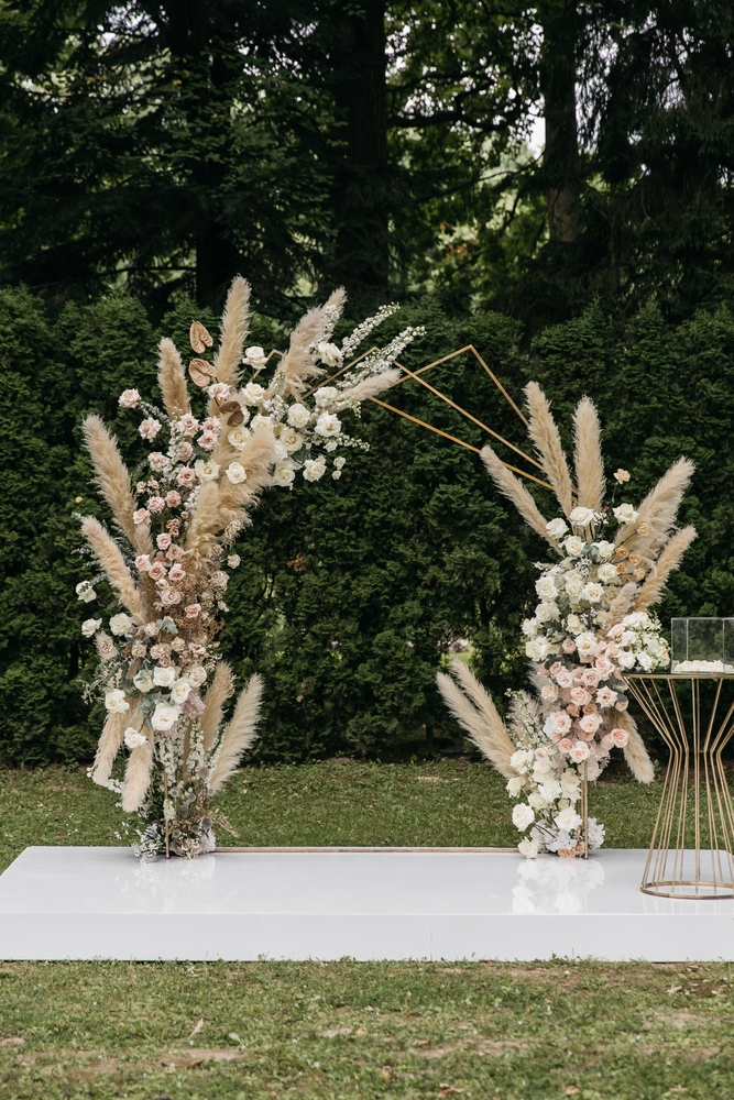 A wedding arch is a symbolic and eye-catching centerpiece for any wedding, especially for rustic themed events. It is essential to integrate the arch seamlessly into the wedding stylization to ensure a harmonious and stylish atmosphere.